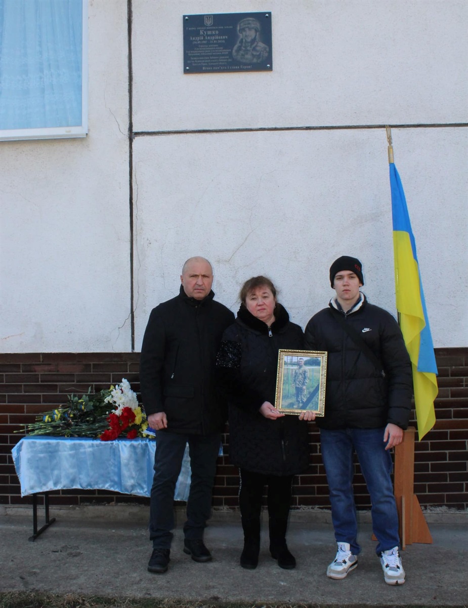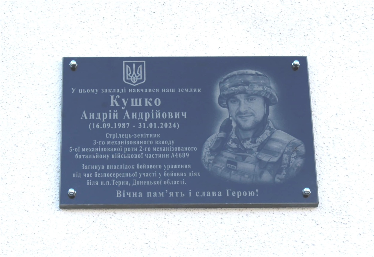 Нещодавно відбулося урочисте відкриття меморіальної дошки Андрію Кушку, який загинув 31 січня 2024 року від тяжкого поранення отриманого в бою на Донеччині під Тернами.