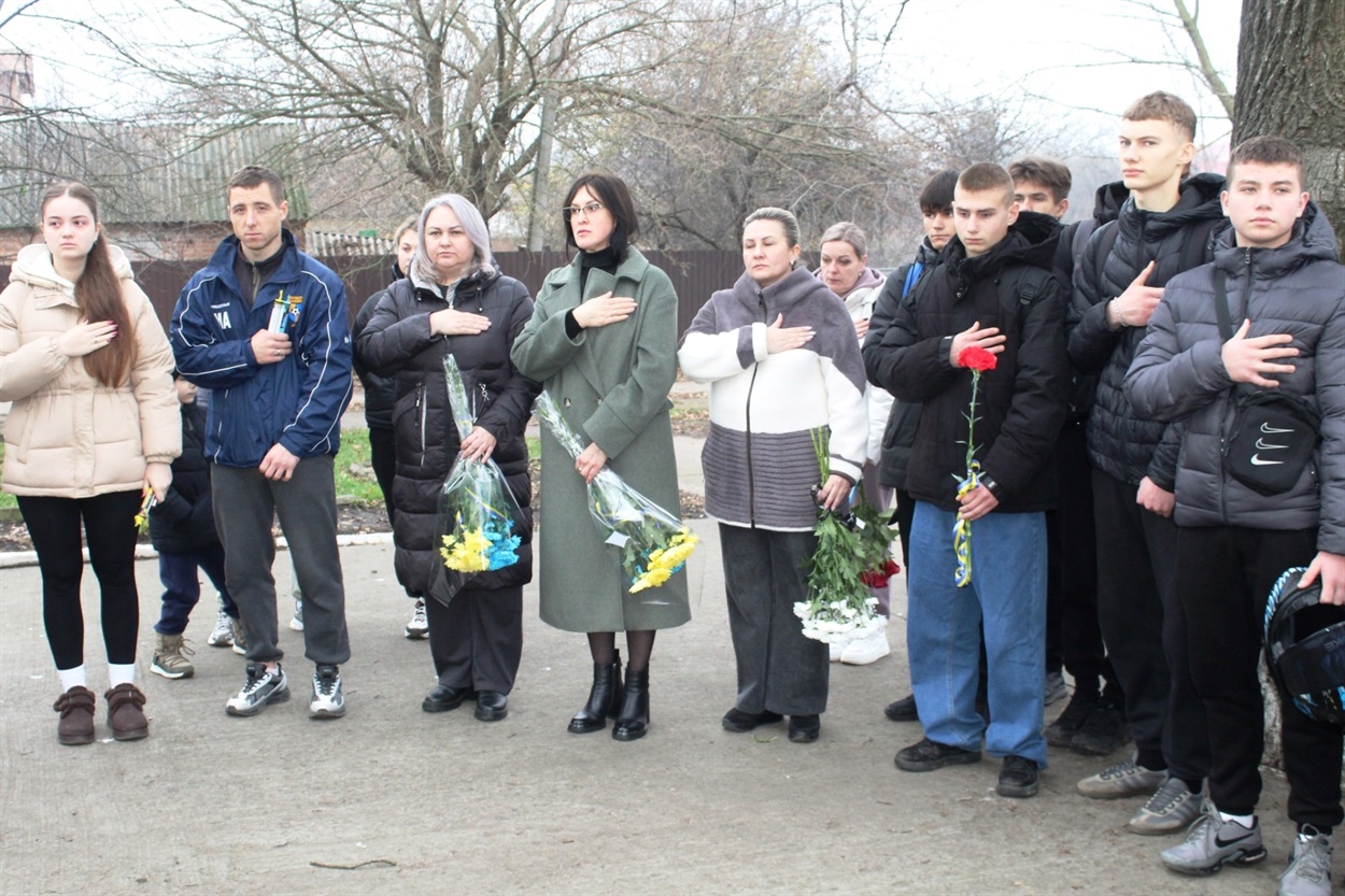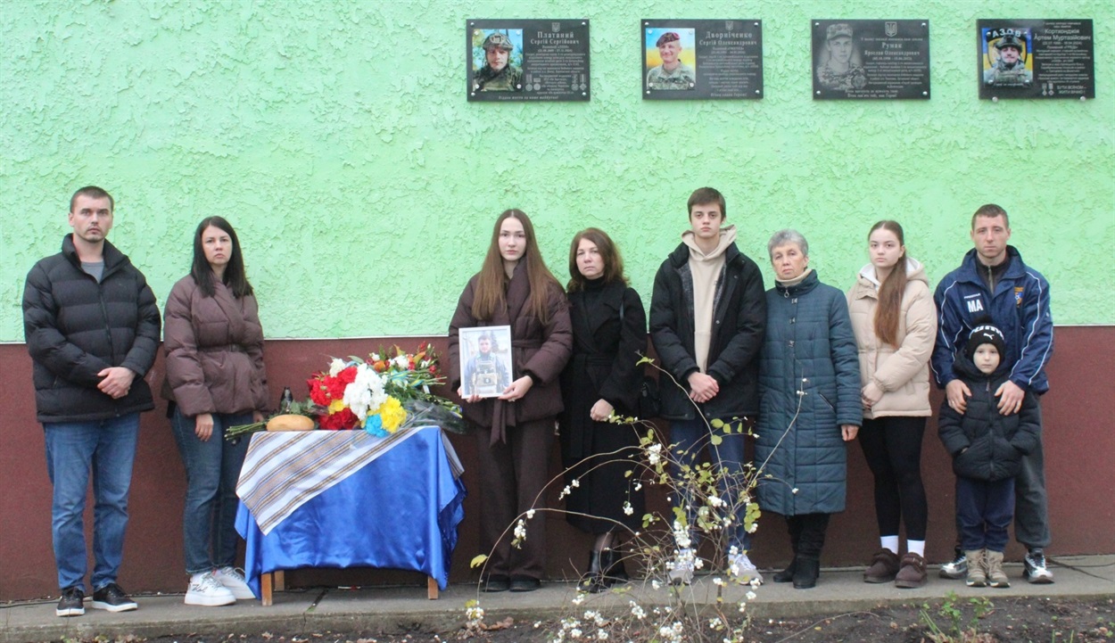 “Про втрати завжди говорити важко і боляче, але коли із життя ідуть зовсім молоді, то говорити важко і боляче вдвічі, — говорить Вікторія Євсович. — Сьогодні у нашому ліцеї з`явиться пам’ятна дошка, пам’ятний знак, який знову і знову буде нагадувати нам про війну, про материнське та людське горе.