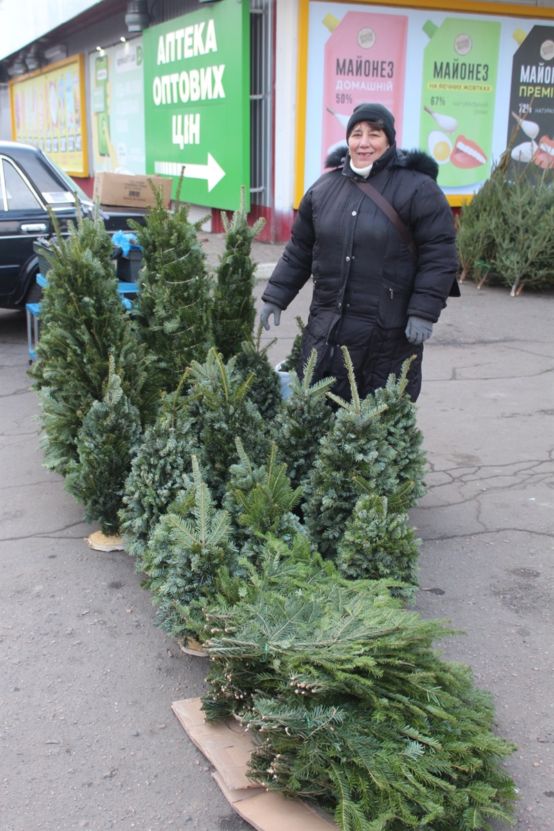 Пані Надія виростила в контейнерах ялинки до свята. Адже такі ялинки залишаються живими після свята і їх можна посадити біля своєї оселі. І потім щороку прикрашати на свято власну живу ялинку. Ще жінка принесла на ярмарок квашені овочі: капусту, помідори, кавуни. “Сама виростила, сама поквасила. Адже квашені овочі — це теж традиційні страви для столу українців, вони доречні і на свято і в будні,” — говорить жінка.