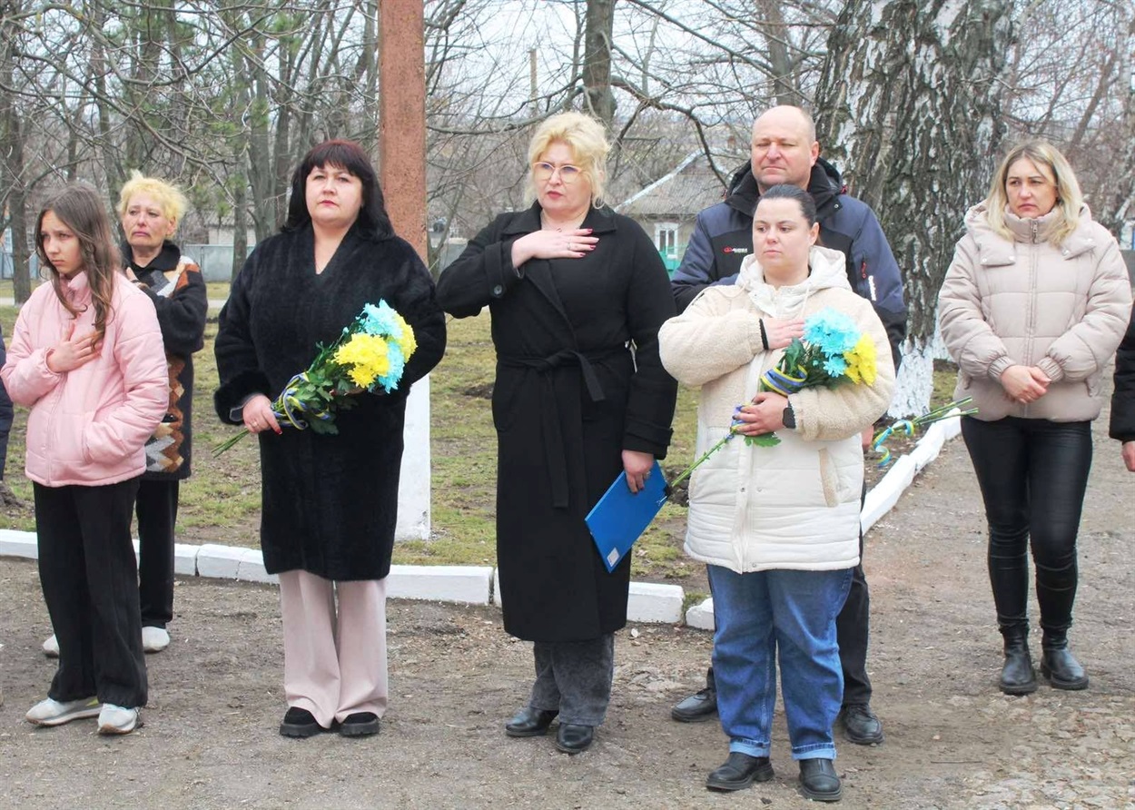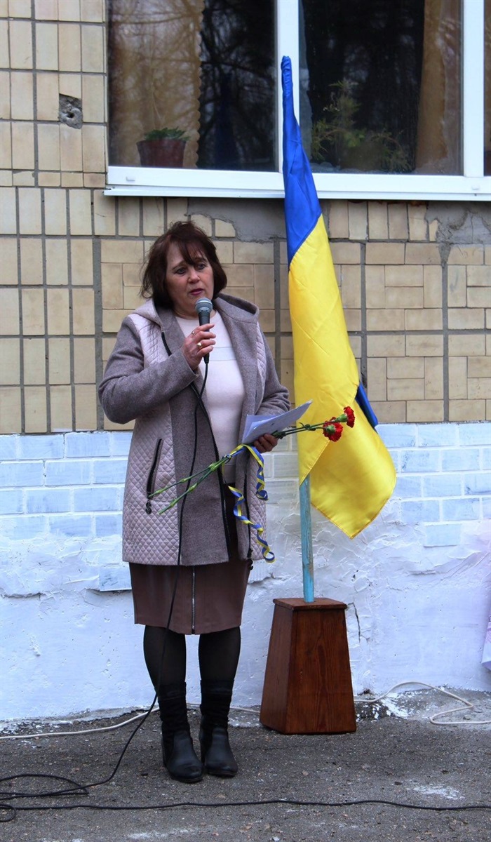 “Немає нічого важливішого, ніж життя людини, а життя, яке віддане за свою Батьківщину, набуває величного сенсу. Україною гримлять вибухи й свистять кулі. Страшна звістка стукає у двері, викликаючи розпач і невгамовний біль у душах рідних та близьких, серця справжніх героїв завмирають, завмирають, як сама Україна, яка погрянула в жалобі за своїх синів, — говорить ведуча. — Про втрати завжди говорити важко і боляче, але коли із життя ідуть зовсім молоді, то говорити важко і боляче вдвічі. 19 березня 2026 року у нашій гімназії з`явиться пам’ятна дошка, пам’ятний знак, який знову і знову буде нагадувати нам про війну, про материнське та людське горе.