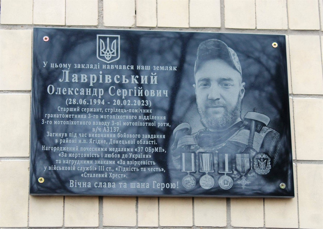Сьогодні схиляємо голови в пам'ять нашого учня Олександра Лаврівського, який загинув на війні, захищаючи територіальну цілісність і незалежність рідної землі.