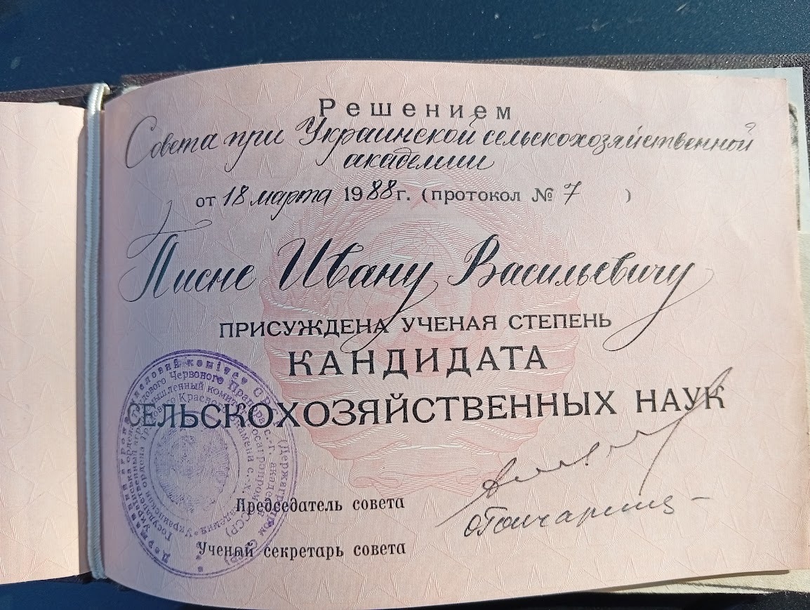 Чоловік вважає, що не дарма прожив життя. Його досягнення в роботі приносили країні економію, яка вимірювалася зекономленими мільйонами рублів. Любов до землі, до вирощування рослин успадкував від своїх предків. Адже ще його прадід, 1850 року народження працював садівником в маєтку поміщика Горбаневського в селі Майорище на Полтавщині. А прабабуся була покоївкою в цього ж поміщика. Навчив і сина, як за садом доглядати. Тож, коли у 1925 році почали землю ділити, то дід Іван вибрав наділ у вибалку, поближче до річки. Бо знав, що в такій місцині сад краще захищений від весняних приморозків. Відразу обсадив свій наділ з трьох сторін осокорами, липами та березами. Щоб захищали сад від холодних вітрів.