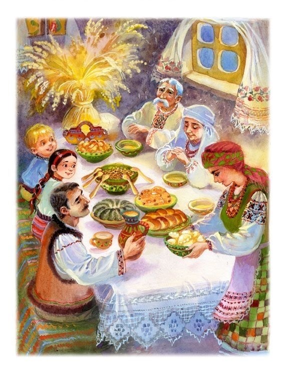 Всі знають, що батько ховався, пригинаючись, за горою калачів і пирогів і запитував дітей, чи бачать вони його зараз та бажав, щоб і наступного року в цій ситуації його із-за страв не побачили. Говорити про це вже б і не варто – це загальновідомо.