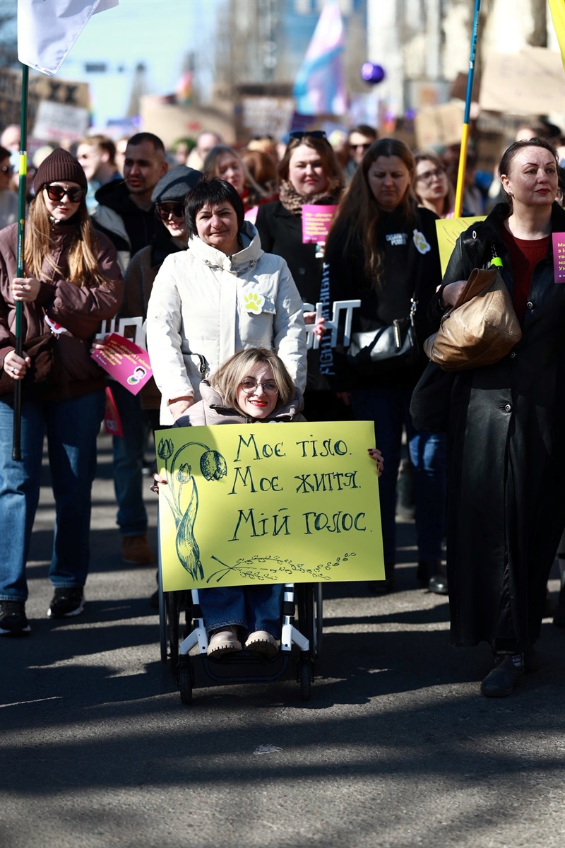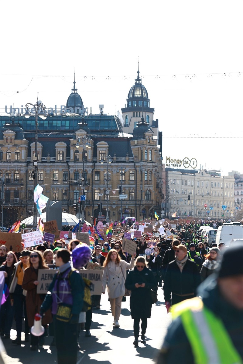 До речі, сьогодні понад дві тисячі учасниць акції пройшли центром Києва від парку Шевченка до Київської міської державної адміністрації на Хрещатику. Вони несли плакати та скандували гасла на захист своїх прав.